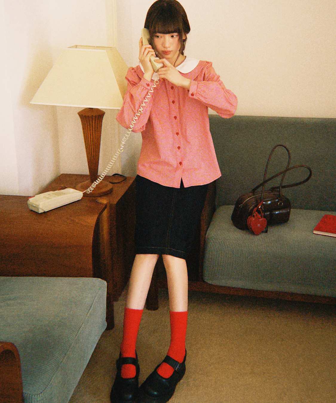 小さめのギンガムチェック柄が甘すぎず、普段使いにも取り入れやすいデザインです♡