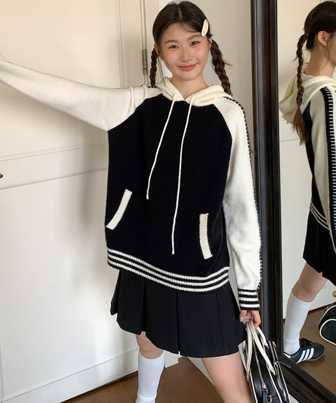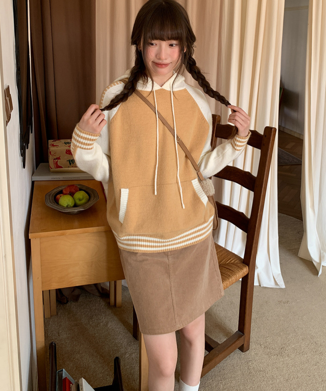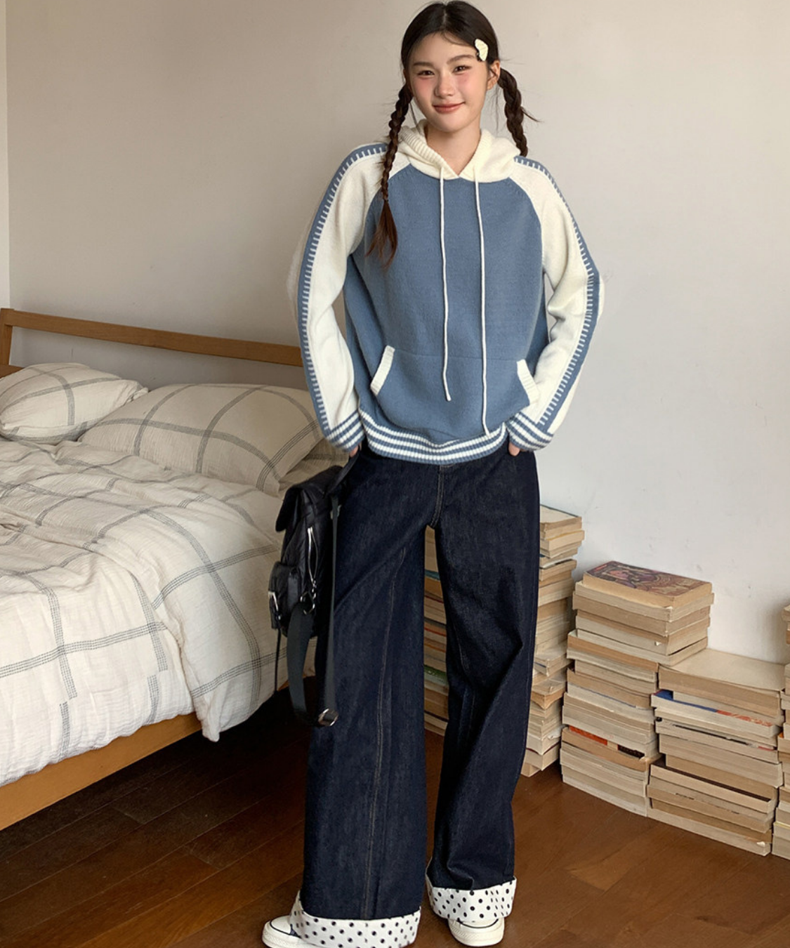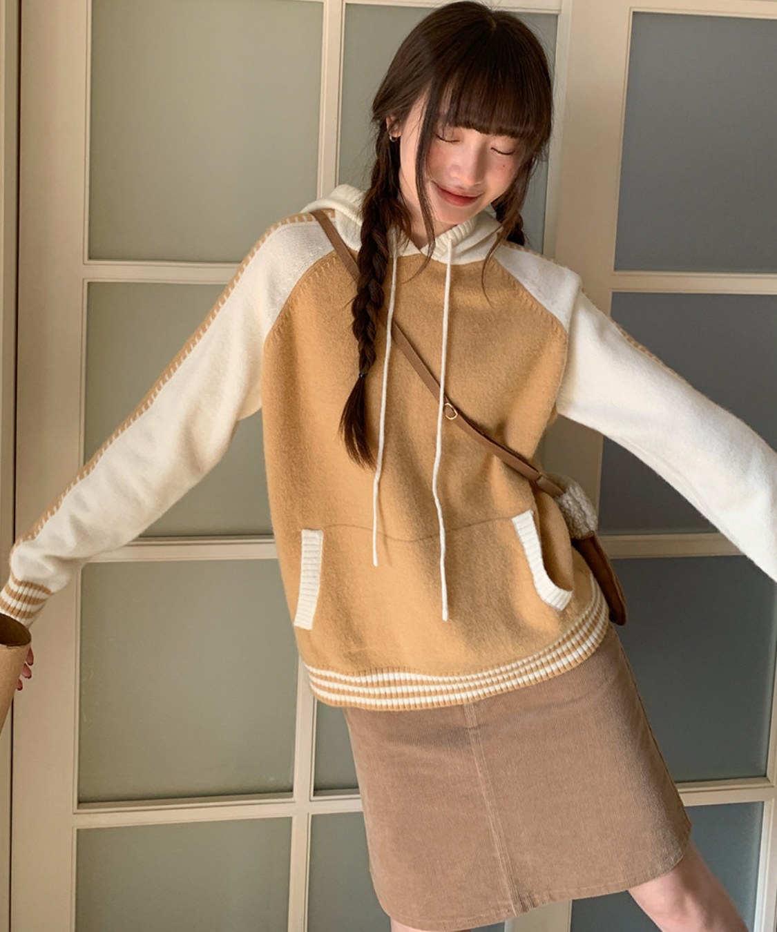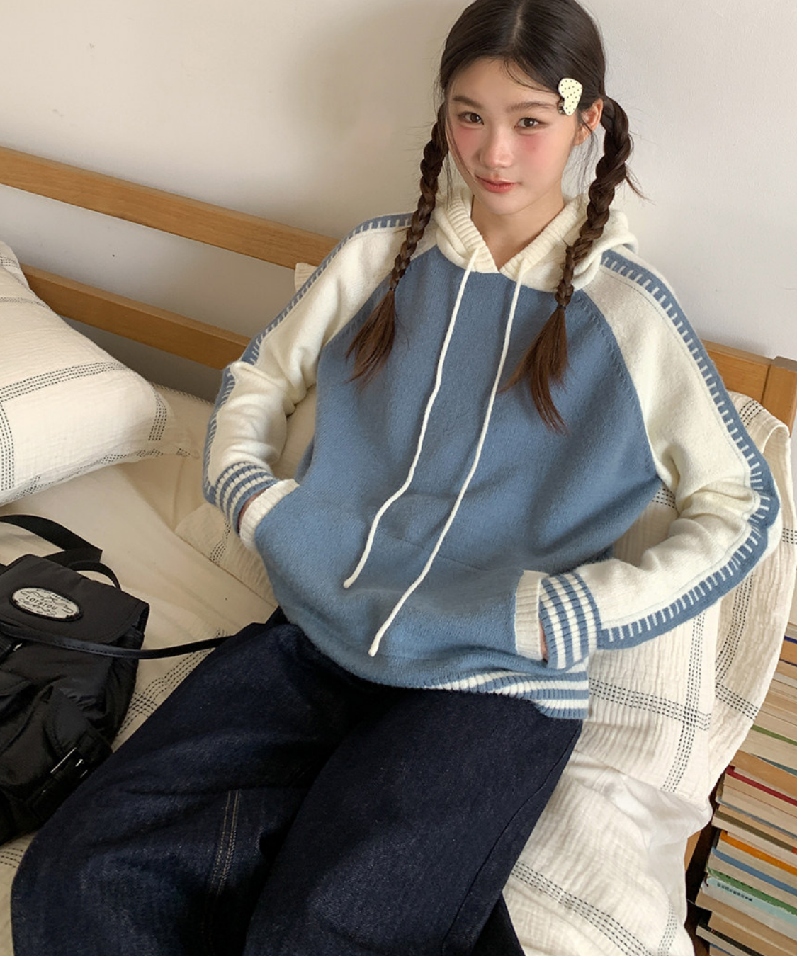 配色切り替えラグランニットフードパーカー