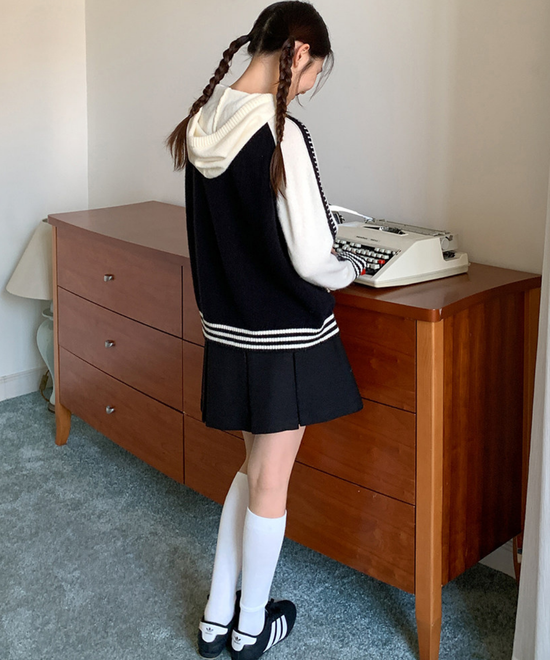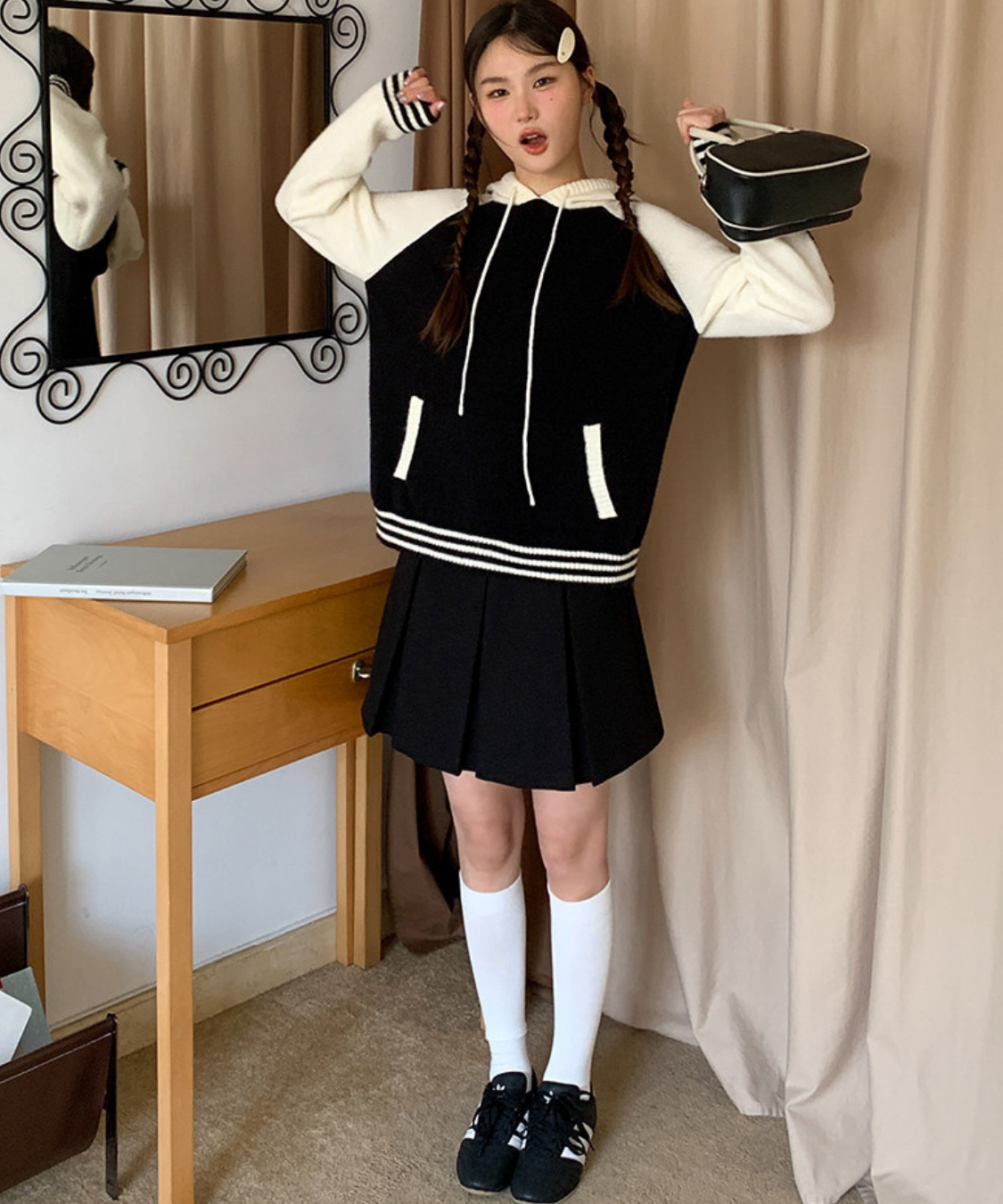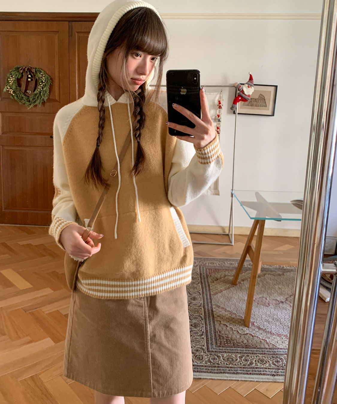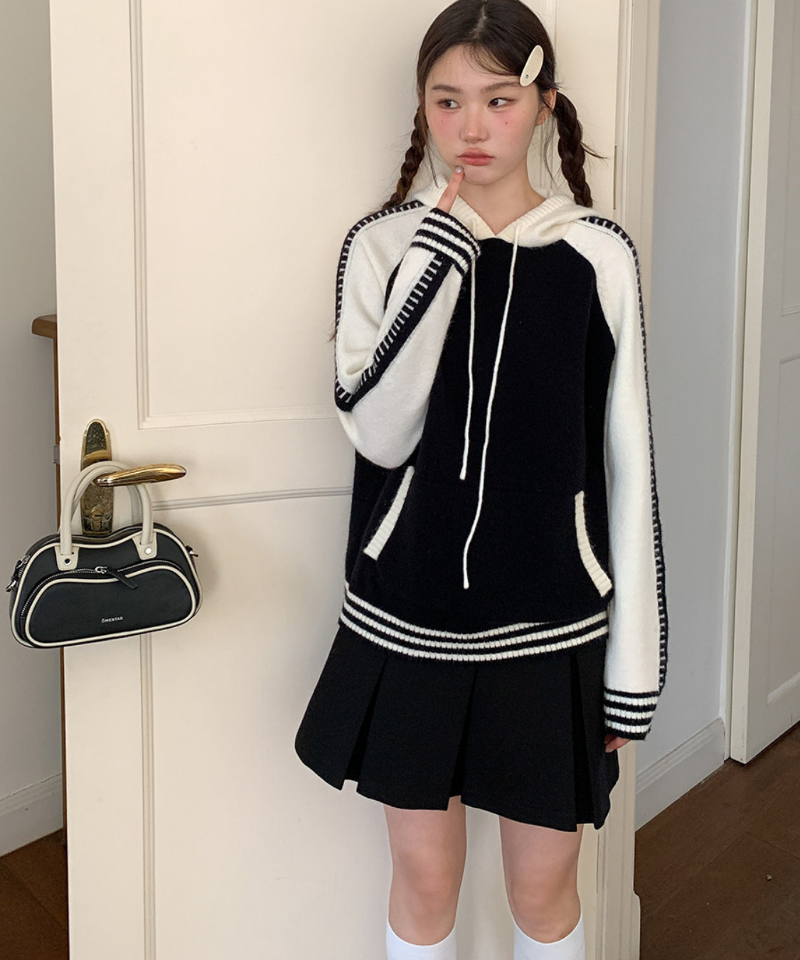 配色切り替えラグランニットフードパーカー