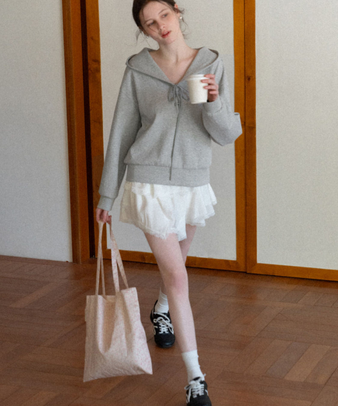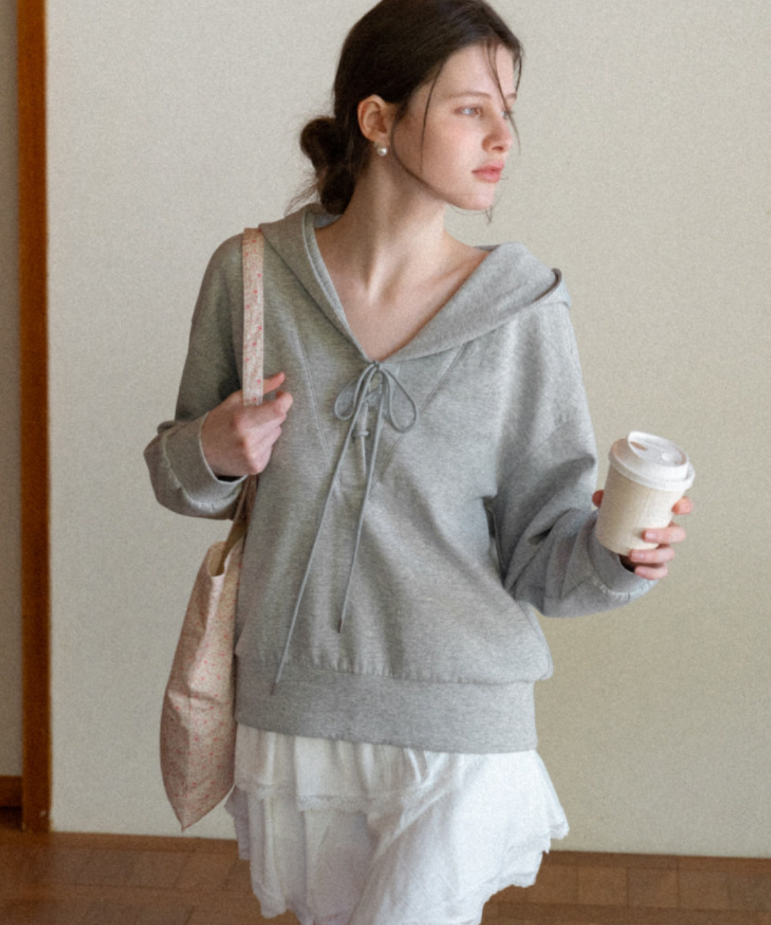 セーラーカラーとフロントリボンがポイントの、ガーリーな印象のパーカーです。