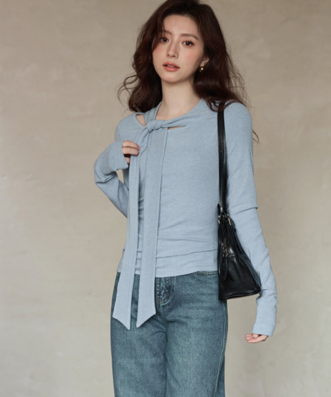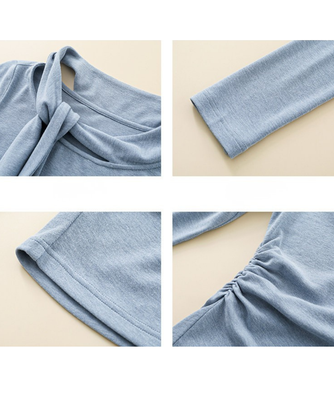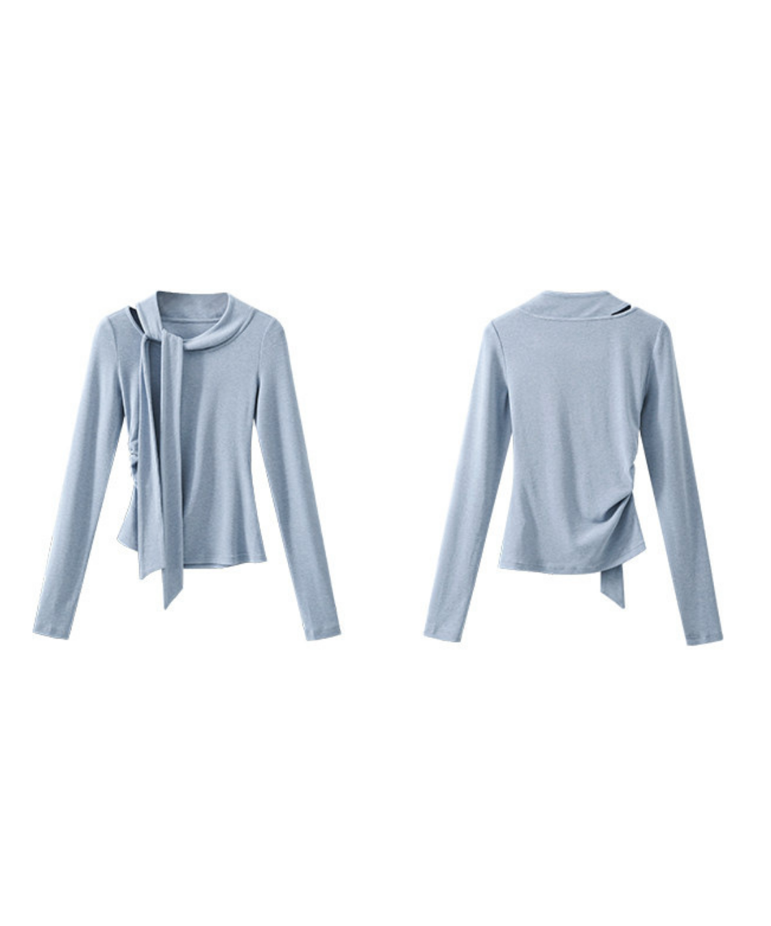 クルーネックボウタイ長袖ギャザーカットソー