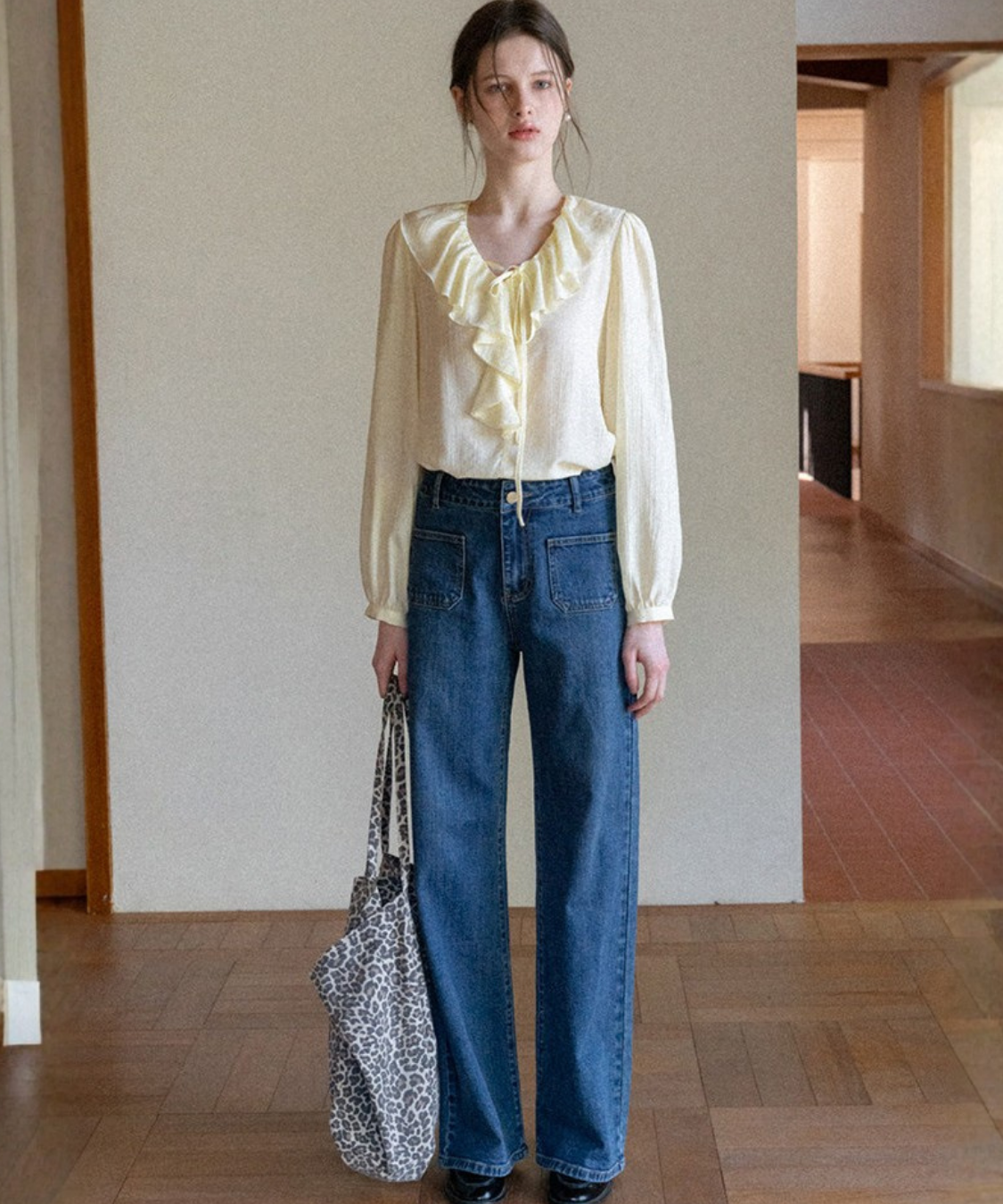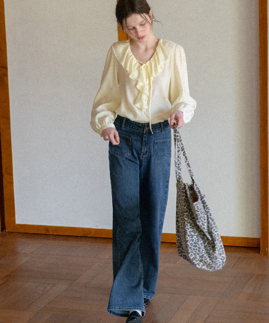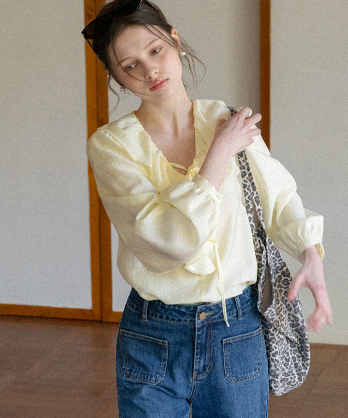 動くたびに揺れるフロントのフリルが華やかな印象のブラウスです。