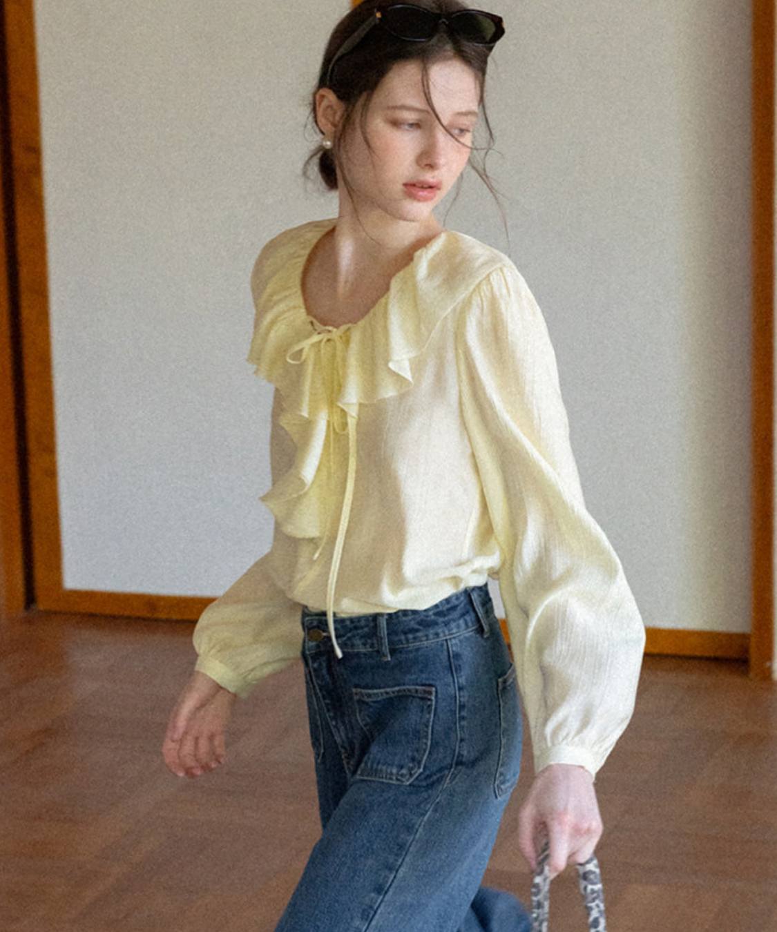 大きめのフリルカラーが小顔効果を叶えてくれるのも嬉しいポイントです◎