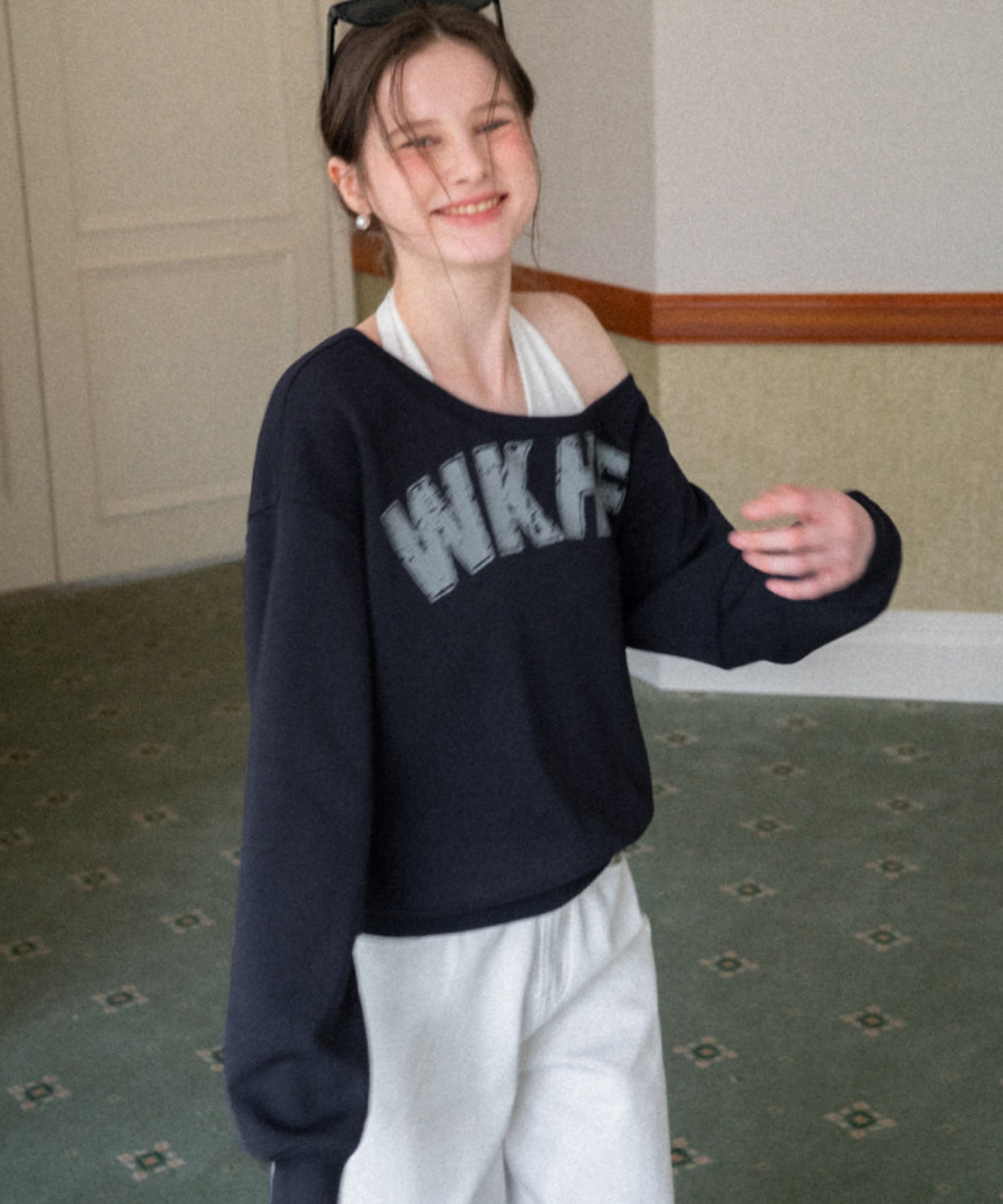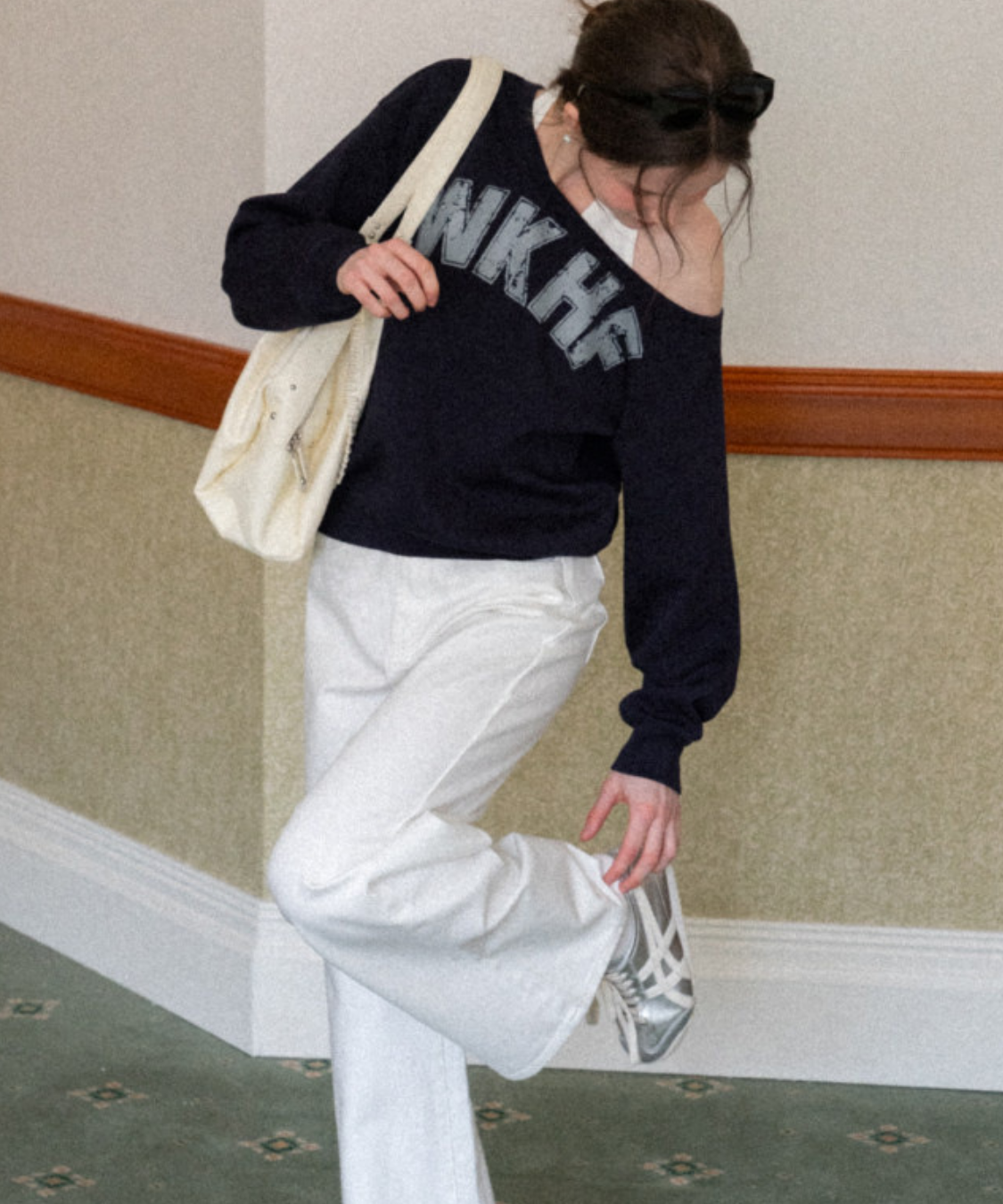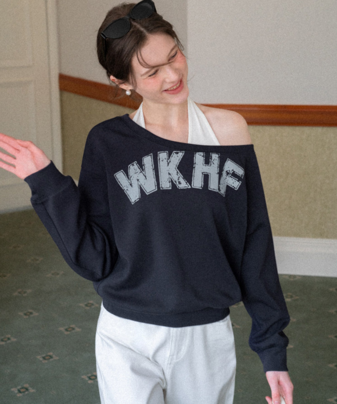 ワンショルダーロゴスウェットトップス
