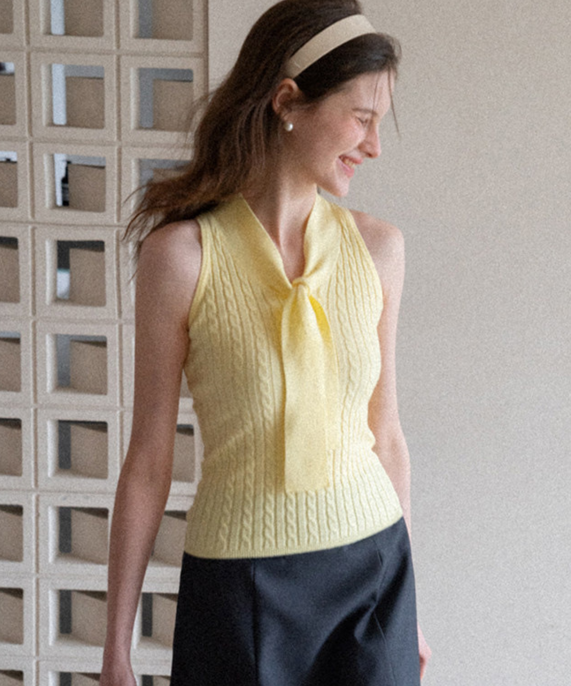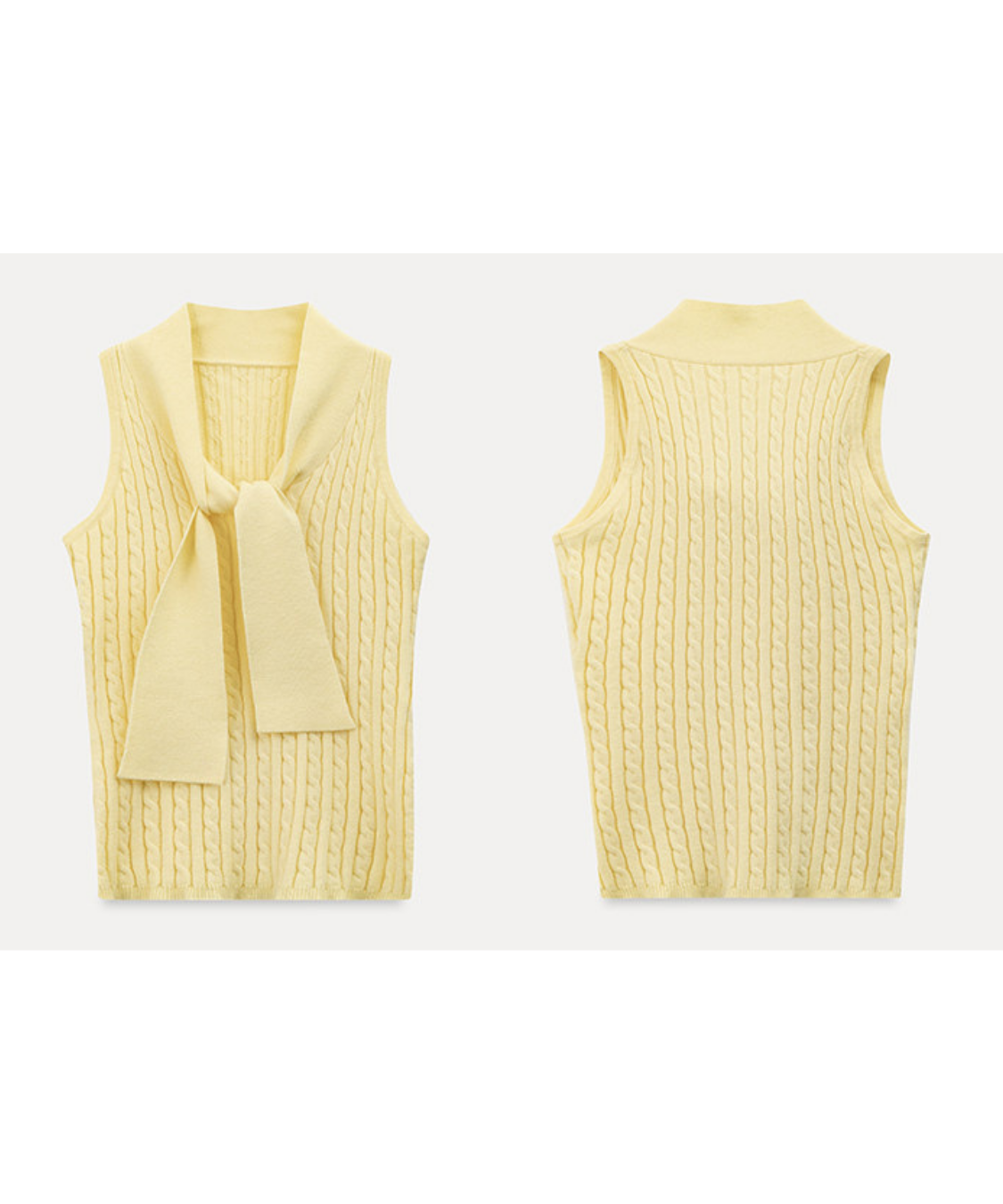 ケーブルニットボウタイノースリーブトップス