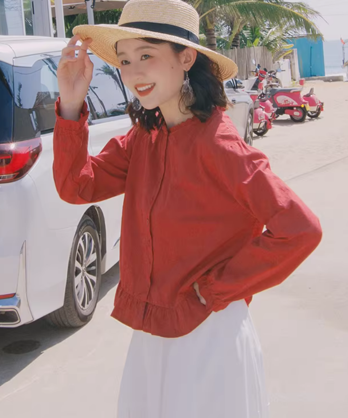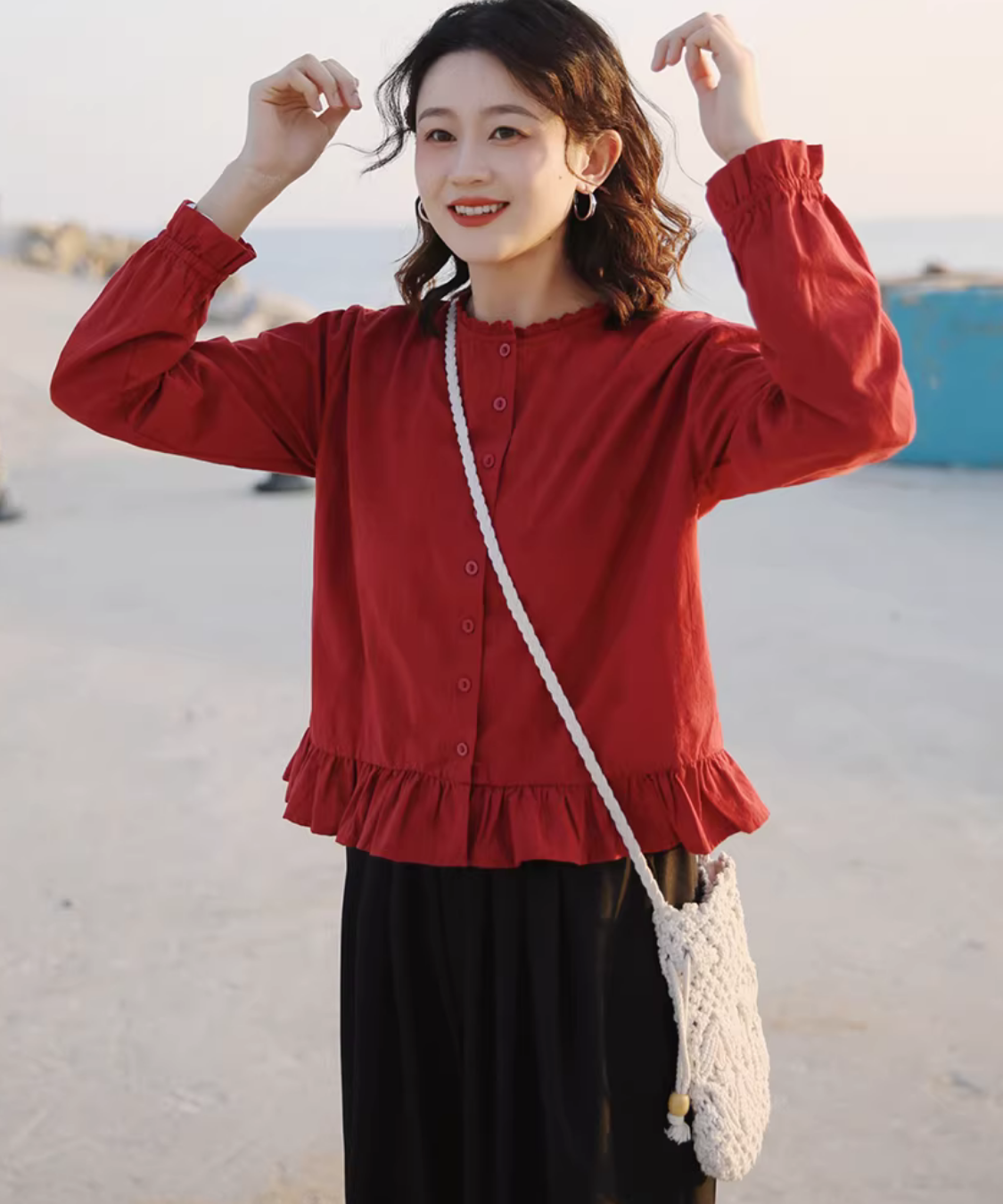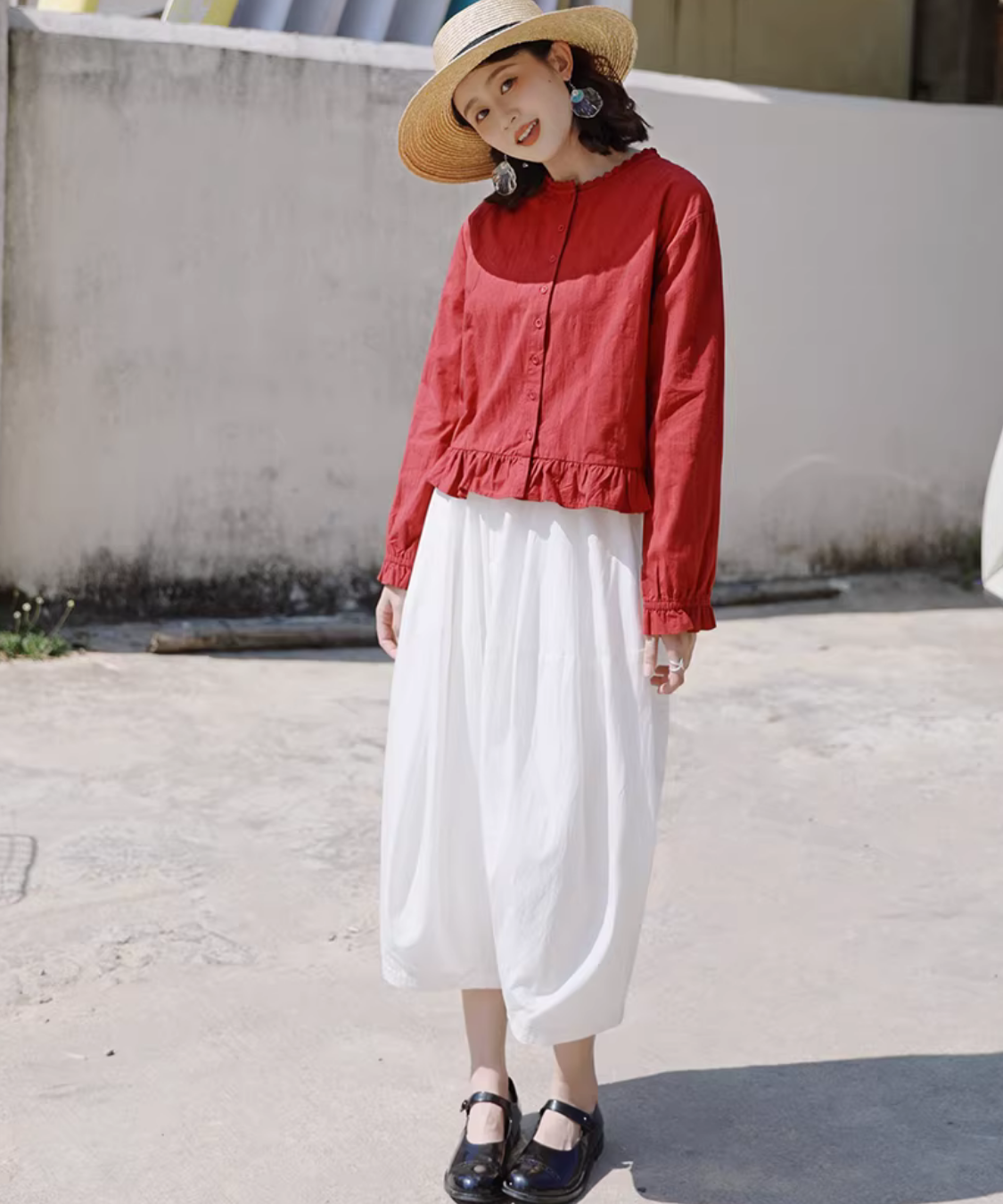 前ボタンで羽織りにも使えて、スカートにもパンツにも合わせやすいのが嬉しいです◎