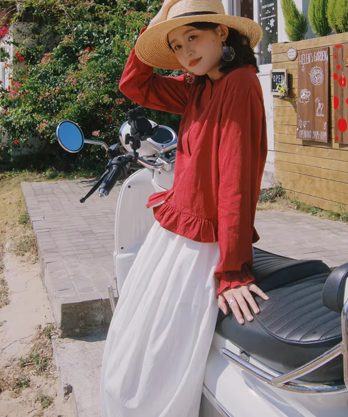 ノーカラーのすっきり感に、裾フリルで可愛さを添えたブラウスです。