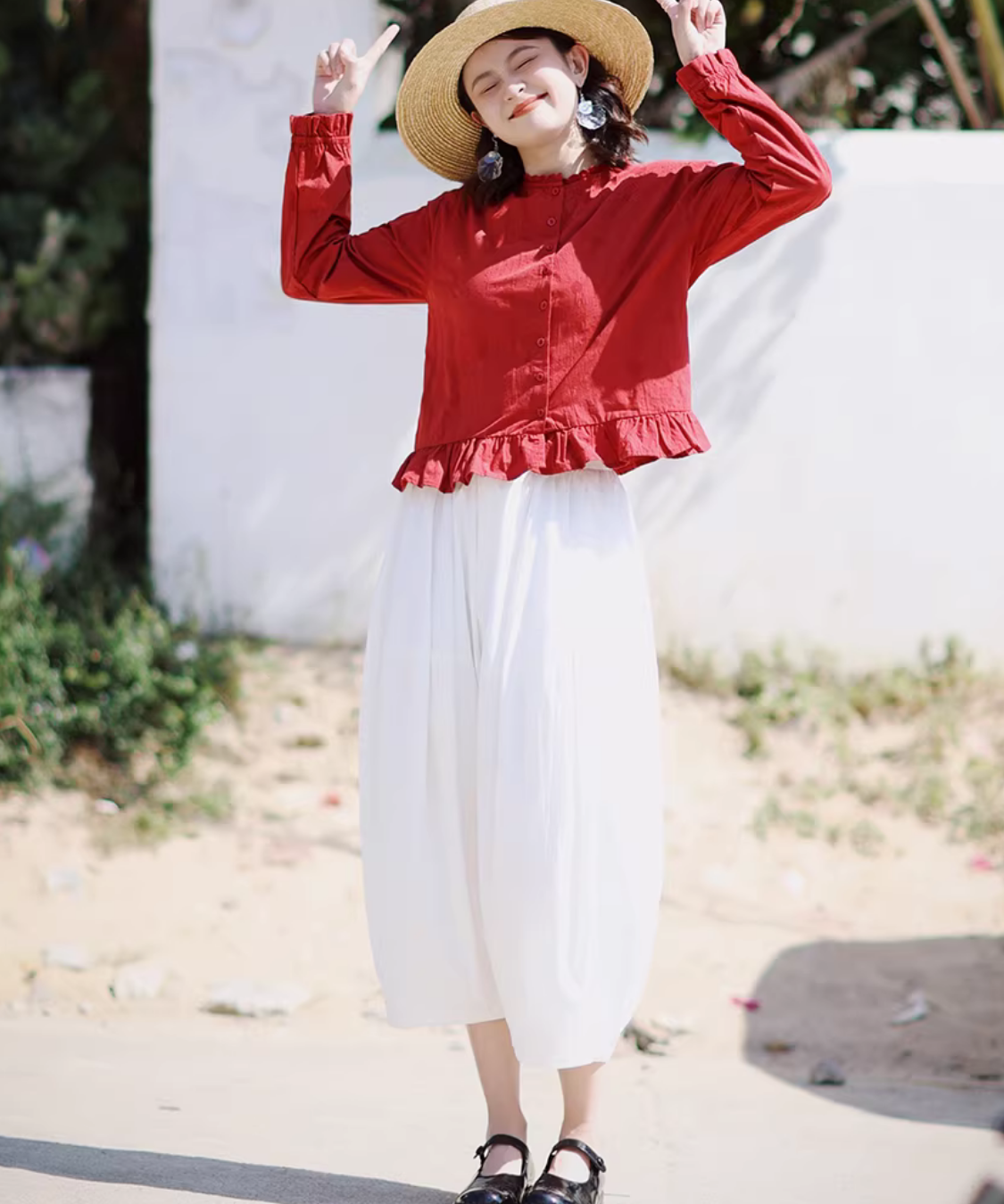 ふんわり広がるシルエットが体のラインを拾いにくく、さらっと着るだけで華やぎます♡